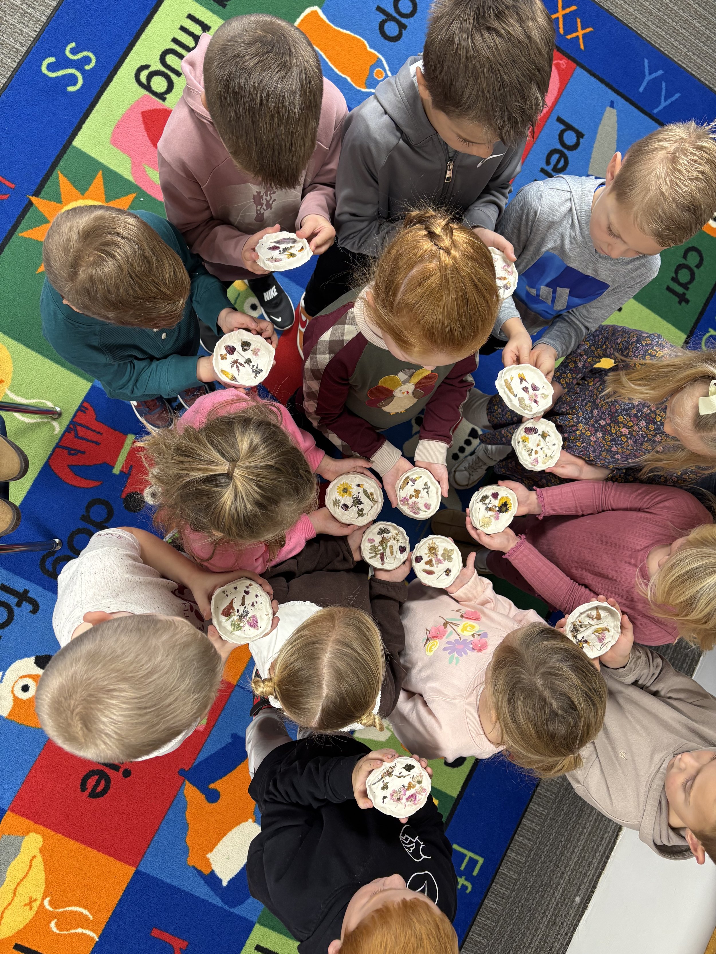 Guided by Mrs. Battjes and Mrs. Clousing, students reflected on how God created each person uniquely. Students created artwork highlighting things they are good at and things that are hard for them, celebrating how God uses our differences to bless others. As part of their science curriculum, students studied plants by collecting flowers and greenery found around BCCS. They practiced being creation enjoyers as they observed God’s world, and they were beauty creators as they pressed and dried flowers. Students then created pinch pots and used their flowers to decorate them.